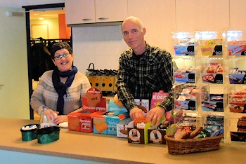 Muriel Holler (links, keukenprinses) en Ruud Besteman (conciërge, alleskunner), bindende steunpilaren voor de Ipabo-Alkmaar. Zij bewerken in hoge mate de goede sfeer. |