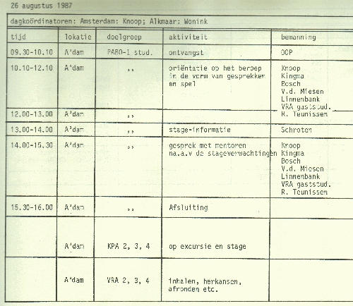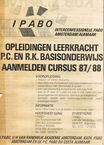 Eind augustus 1987 begon de nieuwe Ipabo met een kleine groep in Amsterdam en een heel bescheiden groep in Alkmaar (17 studenten). Een programma voor de introductieweek werd samengesteld uit de ervaring van de verschillende teams.