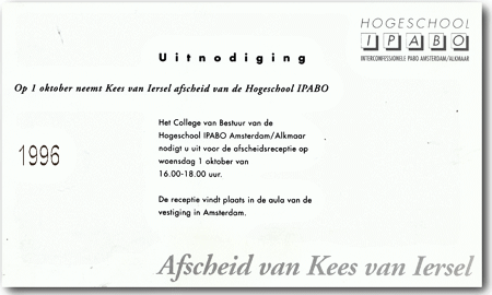 Roel Kingma werd de opvolger van Kees van Iersel in 1994 en wordt directeur initiële opleiding. In deze jaren groeide de deeltijdse opleiding sterk uit en werd gecoördineerd door Coen Schinkel. Roel had bestuurlijke ervaring onder meer als wethouder (Broek in Waterland, namens de PvdA). Roel vertelt hier hoe probeerde een meer formele structuur op te bouwen. De Ipabo had toen een 'platte structuur', met teveel onduidelijkheden. |
